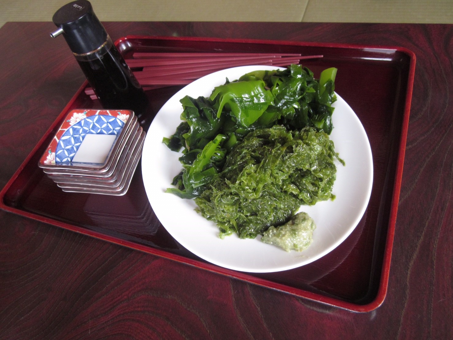 醤油とわさびで食べたわかめとあおさはとても新鮮でおいしかったです。